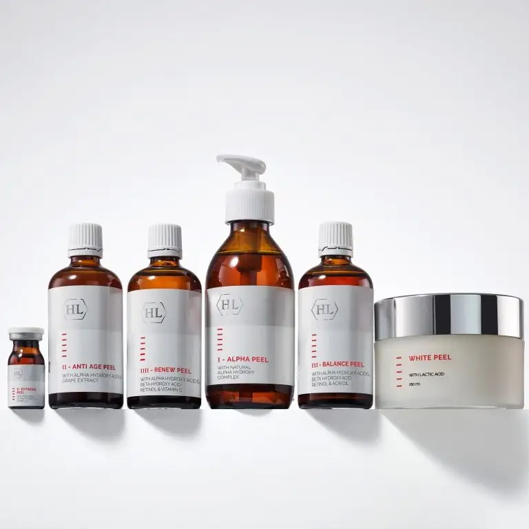 Linija profesionalnih PEELINGA razlikuje se po jačini u zavisnosti od koncentracije i proporcije kiselina, označenih brojevima (I–V), u skladu sa komponentama koje su najprikladnije za tip procedure i stanje kože.